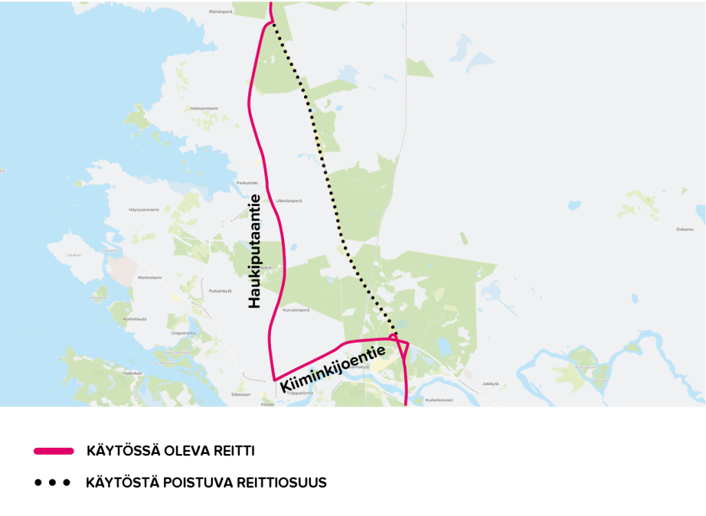 Poikkeusreitti kulkee Haukiputaantien ja Kiiminkijoentien kautta. Poikkeusreitistä saattaa aiheutua viivästystä linjojen aikatauluun.